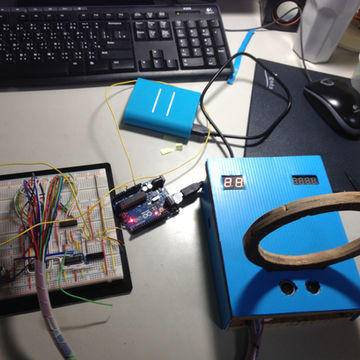 I always wanted to play basketball shooting machines in the mall or in the amusement park when I was a kid. This time, I made my own. This is a tiny version of basketball shooting machine, which has count down timer, score counting, and music. It is a lot of fun to play at home. One year later this project had done, I went a Taipei Hackthon and met some awesome people there. They helped me to bring my project online that two player can can have competition at the same time but in different places. We put a wifi module on it, so that it can sent score the the cloud and two players would be able to see their real-time scores online.